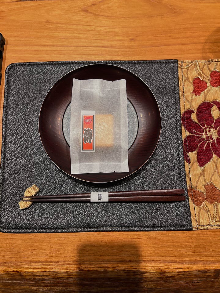 I was presented with one last gift as Noriko left to grab my coat – chef motioned for me to wait as he rifled behind the host stand before procuring a small bag of something.