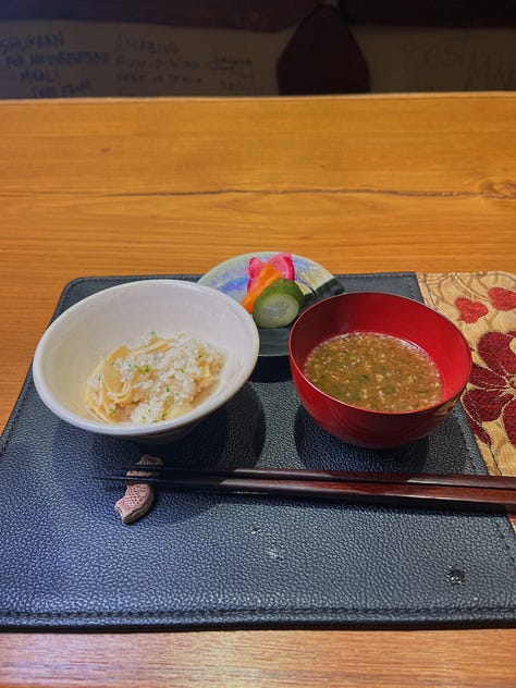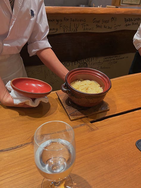 So no, it wasn’t my absolute favorite meal in Tokyo, but it was pretty damn far up there. And I think it’ll definitely be the one I remember most. My advice to you? If you get a seat at the counter, lean into it: talk to your neighbors, talk to your server (maybe you’ll get lucky and get Noriko like we did), and let the night give you one—or two, or a dozen—new things to learn.