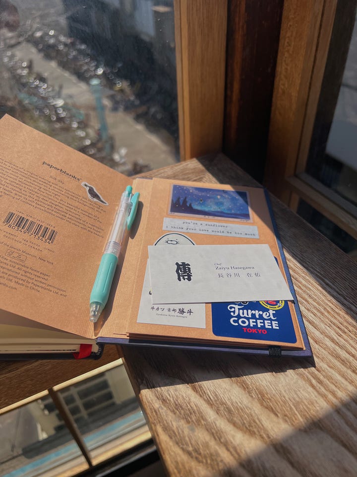 Anyway, that was a mystery to solve for later. I roamed Tokyo for a few hours thinking about how beautiful this world was, and then it was time for dinner.