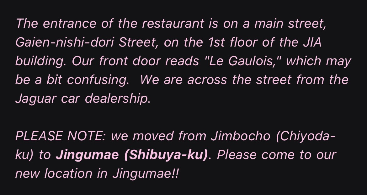 “Le Gaulois was Zaiyu and Emi’s favorite restaurant. After it shut down, they bought the space and kept the name on the door as an homage.”