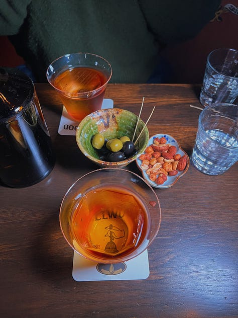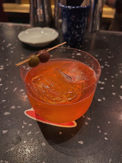 Our wait for The Bellwood (an Asia’s Top 50 Bar) was totally worth it. As one of my travel companions trepidatiously noted on our first attempt, “The line is full of tourists and the manager just walked out speaking English…” Never a promising sign if you’re chasing authenticity. But once inside, the vibe was great, the drinks were excellent, and the dashi olives were addicting. Get two orders of those.