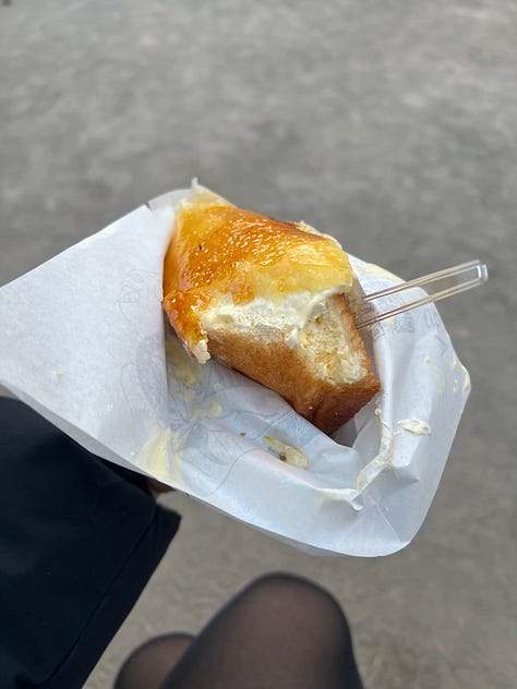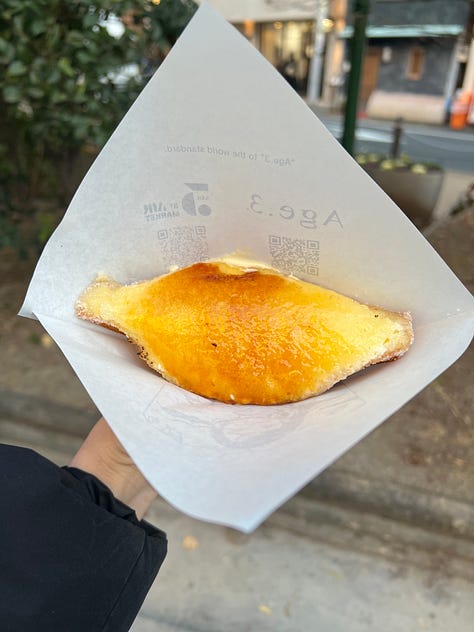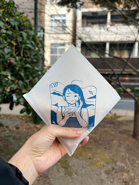 Arrival day involved the herculean efforts of wrestling my Japanese SIM card into submission and then moving three pieces of luggage from Narita airport to downtown Tokyo, which claimed the rest of my energy and the daylight hours. Thankfully I had a sento waiting for me at the hotel — I love booking the Mitsui Garden hotels when I land in Japan for their public baths. I pilfered a few of the grab-and-go toiletries and had a very relaxing soak, followed by a modest dinner of some famichiki and an egg sandwich (I was not about to be victimized by Ginza prices on day one). The 7/11 tamago sando really is just an egg sandwich, but it’s so cheap and delicious that I get why they’re hyped. All konbinis have them, but 7/11 is apparently the award-winning one. They all pretty much tasted the same to me, though 7/11’s is the most texturally interesting.