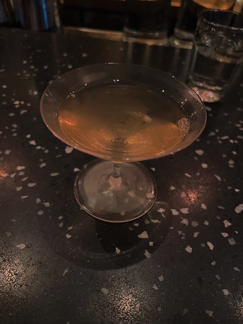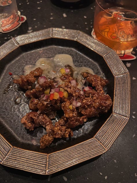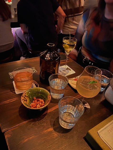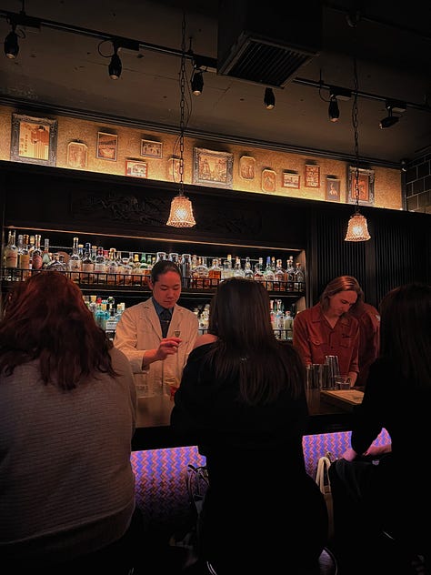 Getting banished to sister bar bw cave after a failed walk in attempt at The Bellwood ended up being a fun surprise. The vibe is a far cry from The Bellwood’s, which is what fueled my initial disappointment — bw cave’s rambunctious dive bar vibe feels brash and unsophisticated next to The Bellwood’s intimate speakeasy setting. But the bartenders were super friendly, the DJ that night was great, and both drinks I tried were fantastic — including probably the best martini on draft I’ve ever had. They distill everything in house, and I got to try the distilled tabasco and strawberry soda and a tomato-based cocktail on draft. Best of all, getting to have full, proper conversations with people after two straight days of travel logistics was such a balm. I thought the food (Chinese fusion) was just okay, though someone in my group liked it more, so YMMV. | Beli