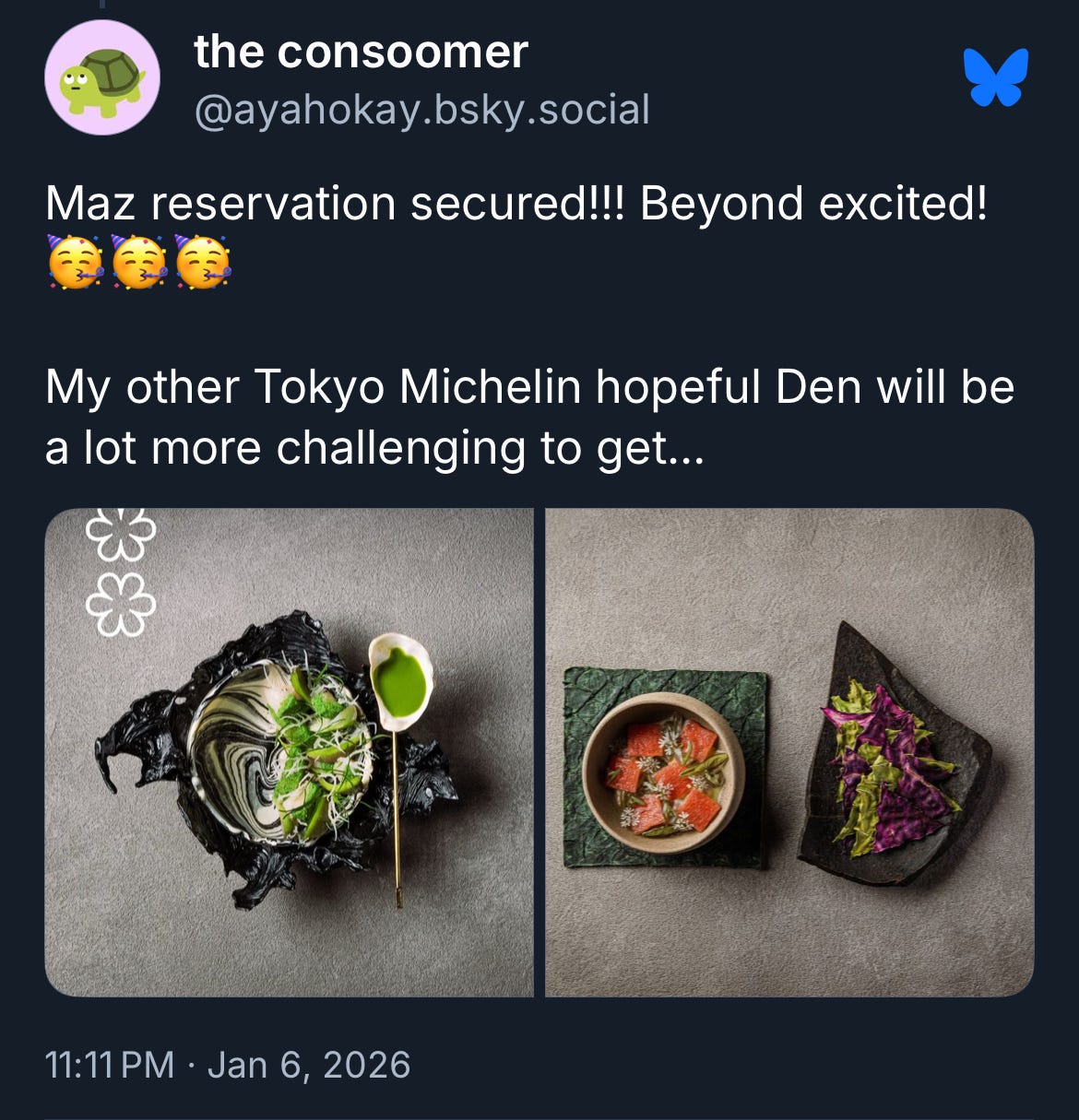 Den is one of the two Michelin-rated spots I want to try while in Japan, the other being MAZ. It’s hilarious to me how ridiculously easy getting a reservation at MAZ was, while Den has me seriously considering paying some guy on fiverr to run an autodialer for me. The beauty of extremes <3 (please answer my fucking calls).