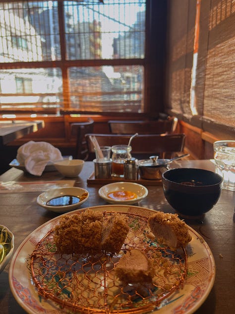 I went to Butagumi in Roppongi Hills and paid an absurd amount for tonkatsu, because apparently these pigs were hand-reared from birth and fed nothing but açai bowls and quinoa.