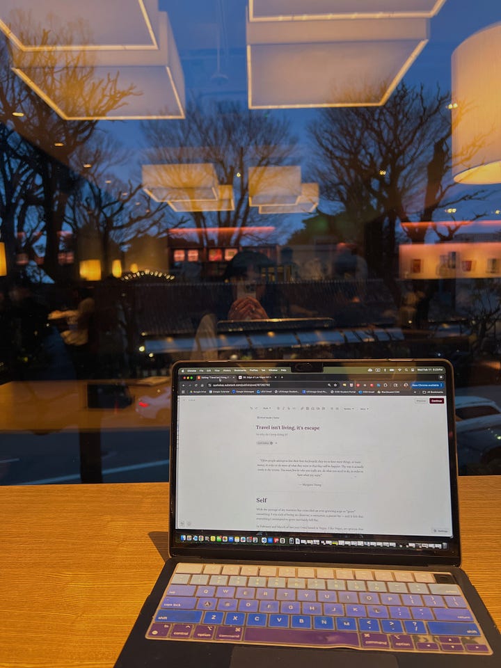 I was going to be traveling nonstop for the next four months, so it made sense to take things slow in January. But by Week 2, I had shifted to the other extreme. I was trying to do everything, which, in a city like Tokyo, is going to burn you out fast. I wasn’t allowing myself to fully sink into and appreciate anything.