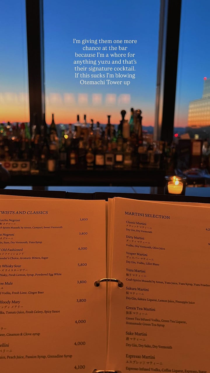 I walked here from Borderless, and while the drinks were good and I enjoyed the concept, I feel that there’s so many stronger cocktail bars in Tokyo that this is a skip.