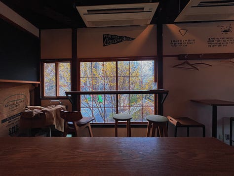 …Is near Chiyaba, and while I don’t think their coffee is the best of the best, it has the best vibe of any cafe I’ve been to, with second floor seating overlooking the elevated train tracks you were just seated underneath at Chiyaba. Some of the team speak really good English too and are incredibly sweet.
